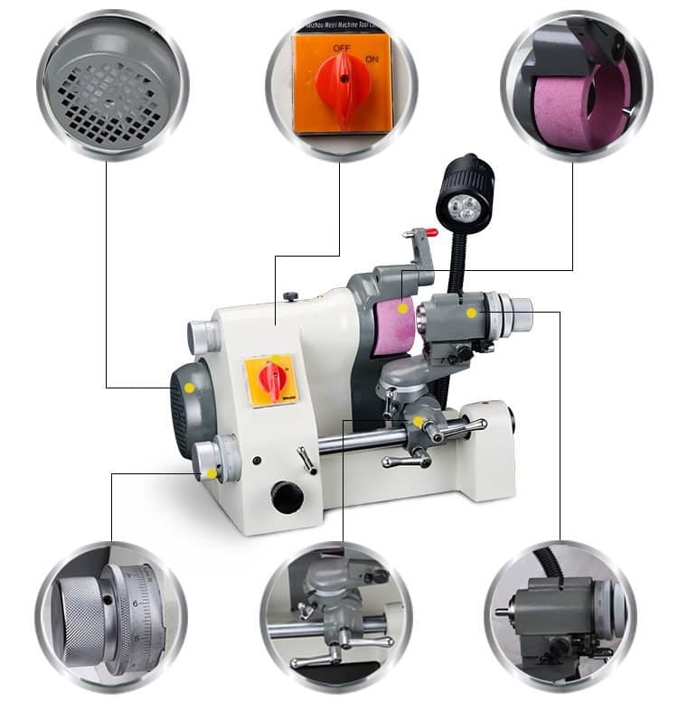 Makine, çeşitli şekillerde (uç, yarıçap, ters açı) kesicileri hem uç boyunca hem de spiral şeklinde keskinleştirebilir.